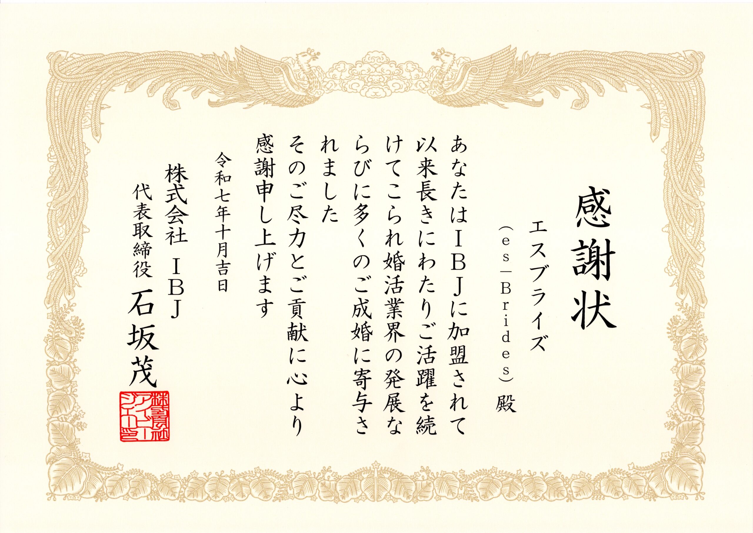 エスブライスが、加盟しております結婚相談所連盟の I B J から、